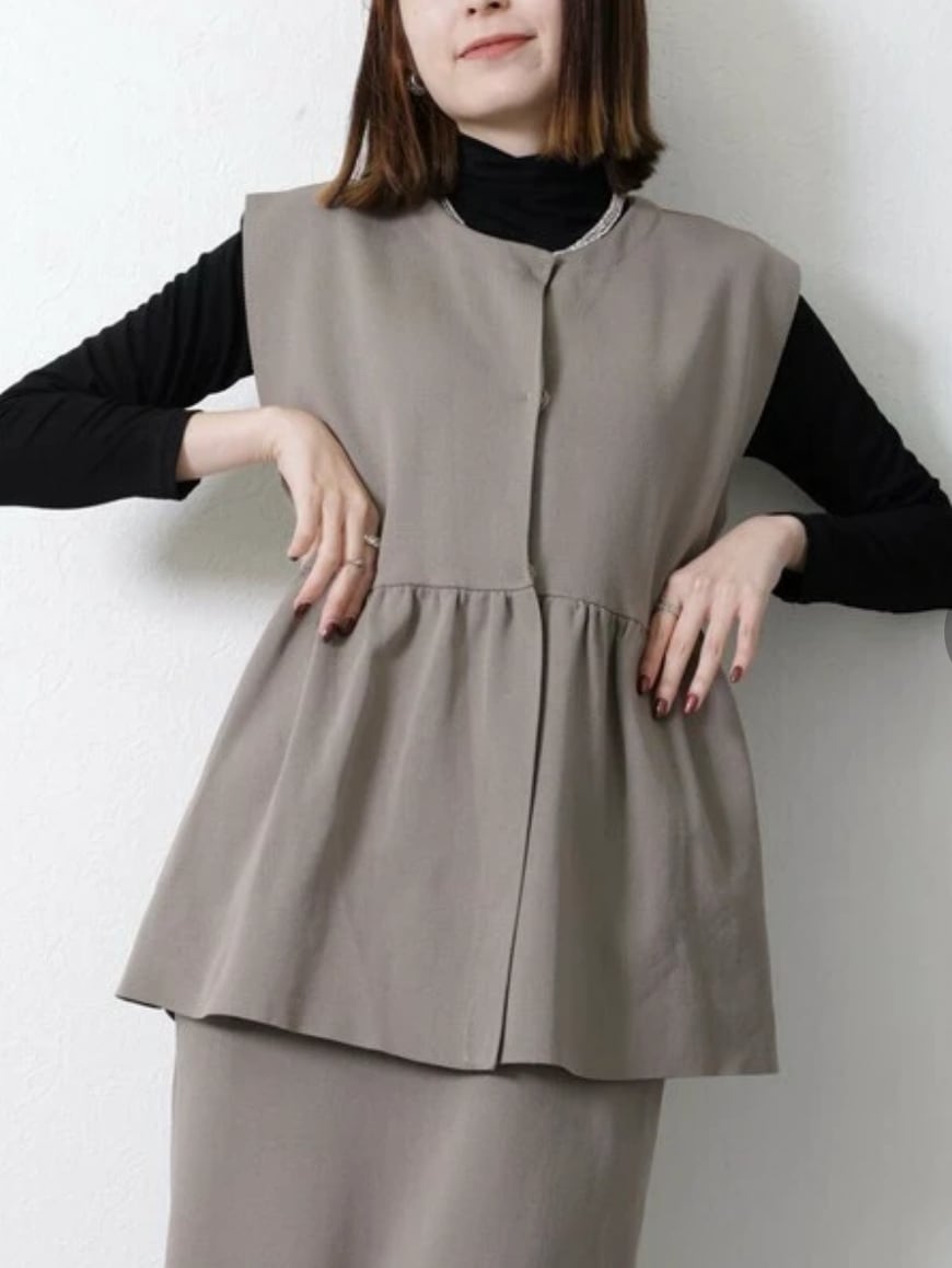 ・シーズンレス着心地抜群のスポンジニットのペプラムベスト