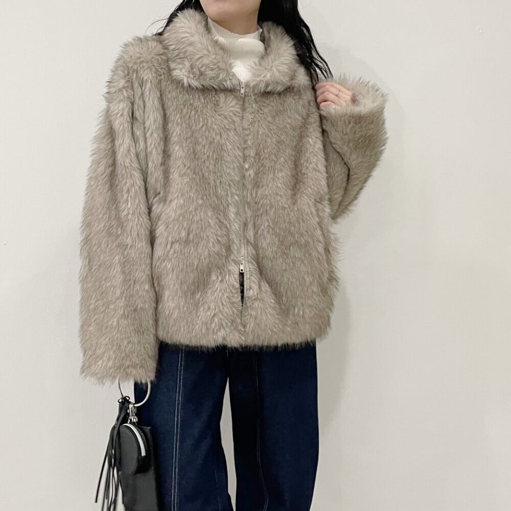 フェイクファー/ブルゾン/ダブルジップ/スタンドネック/ジャケット