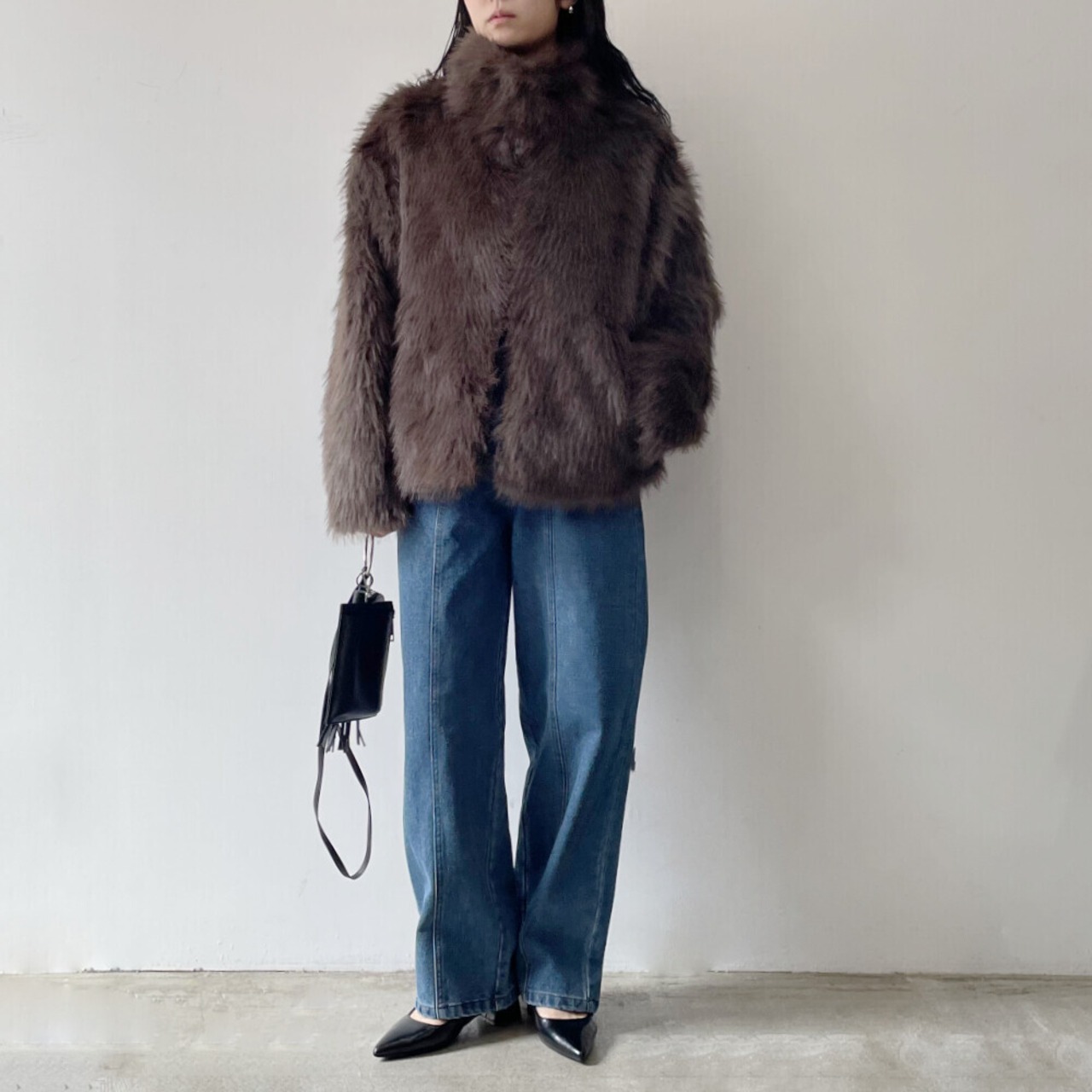 ・軽やかな着心地が魅力のフェイクファー素材を使用